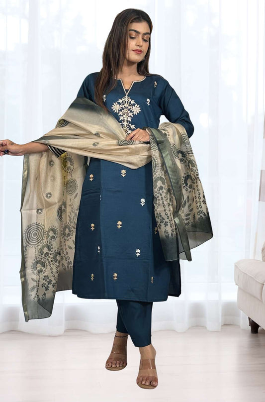 Women's Rayon Round Neck 3/4 Sleeve Embroderied A line Kurta for Party Office Everyday